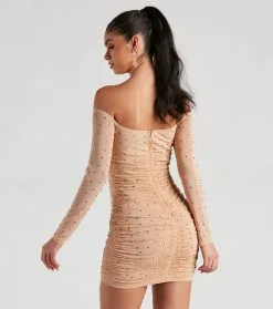 Bring the sparkle and shine in a dress that puts you under the spotlight! Allison features dazzling sequins throughout, a sleeveless cowl neckline, bungee spaghetti straps, and a mini-length silhouette. The dress is composed of a lined mesh fabric that offers a form hugging fit with minimal stretch. Complete look with rhinestone heels and a matching