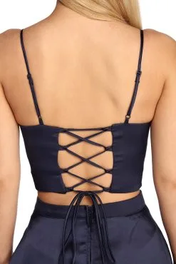 - Sleeveless, scoop neckline, bungee spaghetti straps