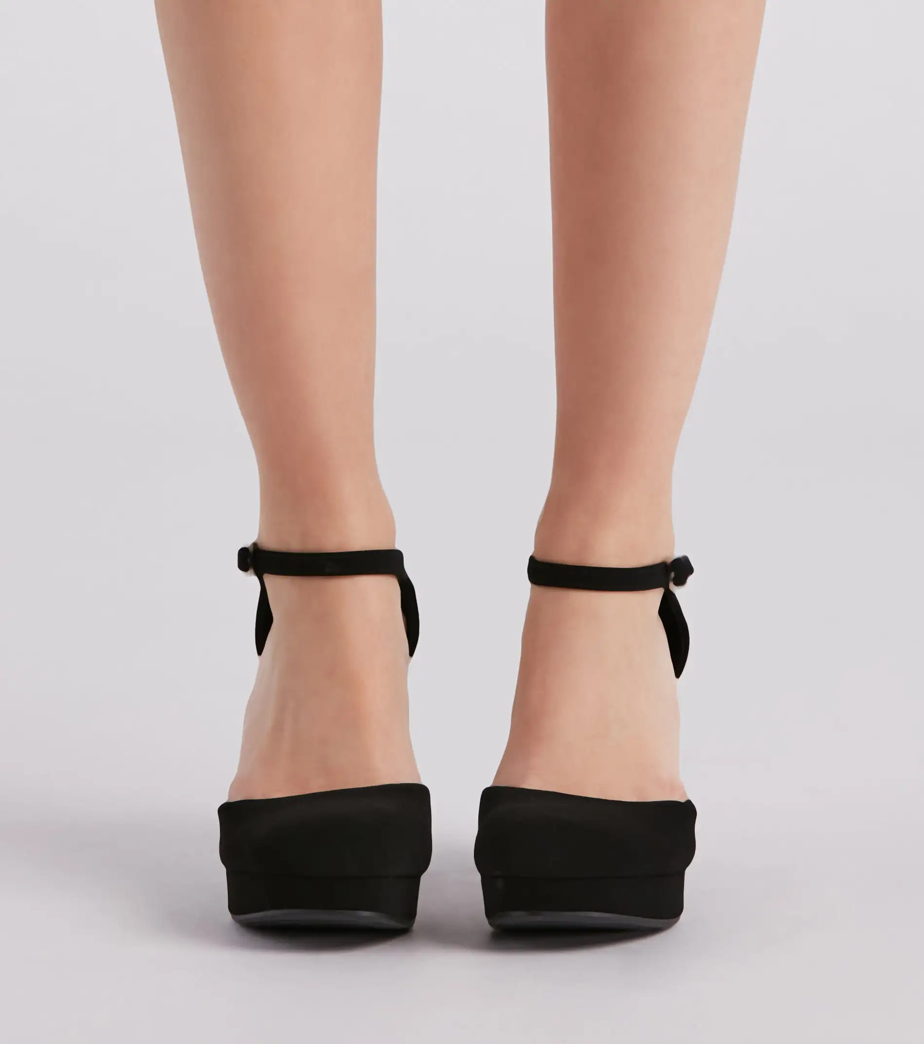 You’ll be a classic trendsetter in these adorable mary jane platform heels! They feature a closed almond toe, a thin adjustable ankle strap, a platform sole, and a block heel. Style with a chic