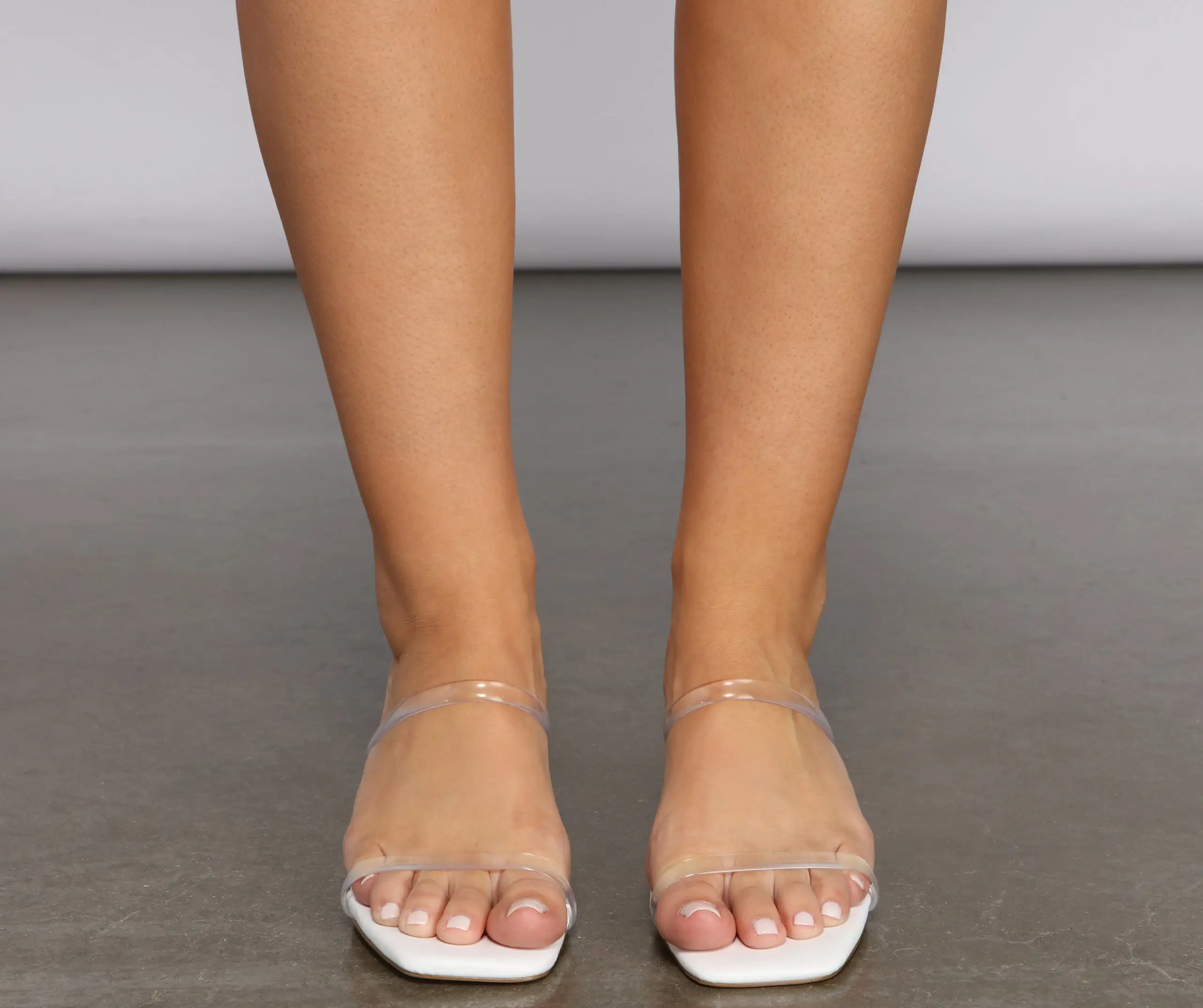 Bring double the glam with mules that slay! The mules feature an open back, a double row of clear straps, a square toe, and a clear lucite block heel. Complete the look with a