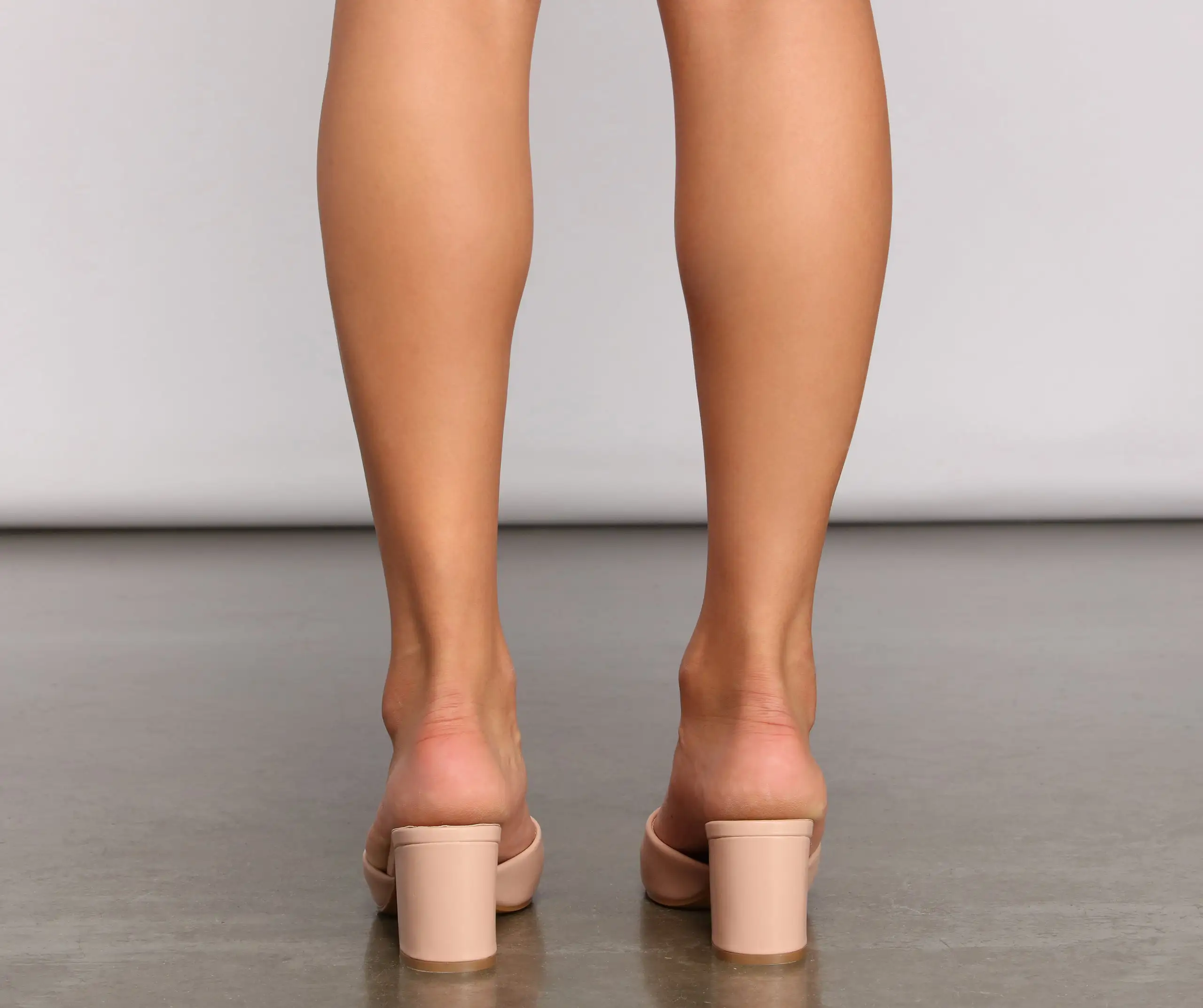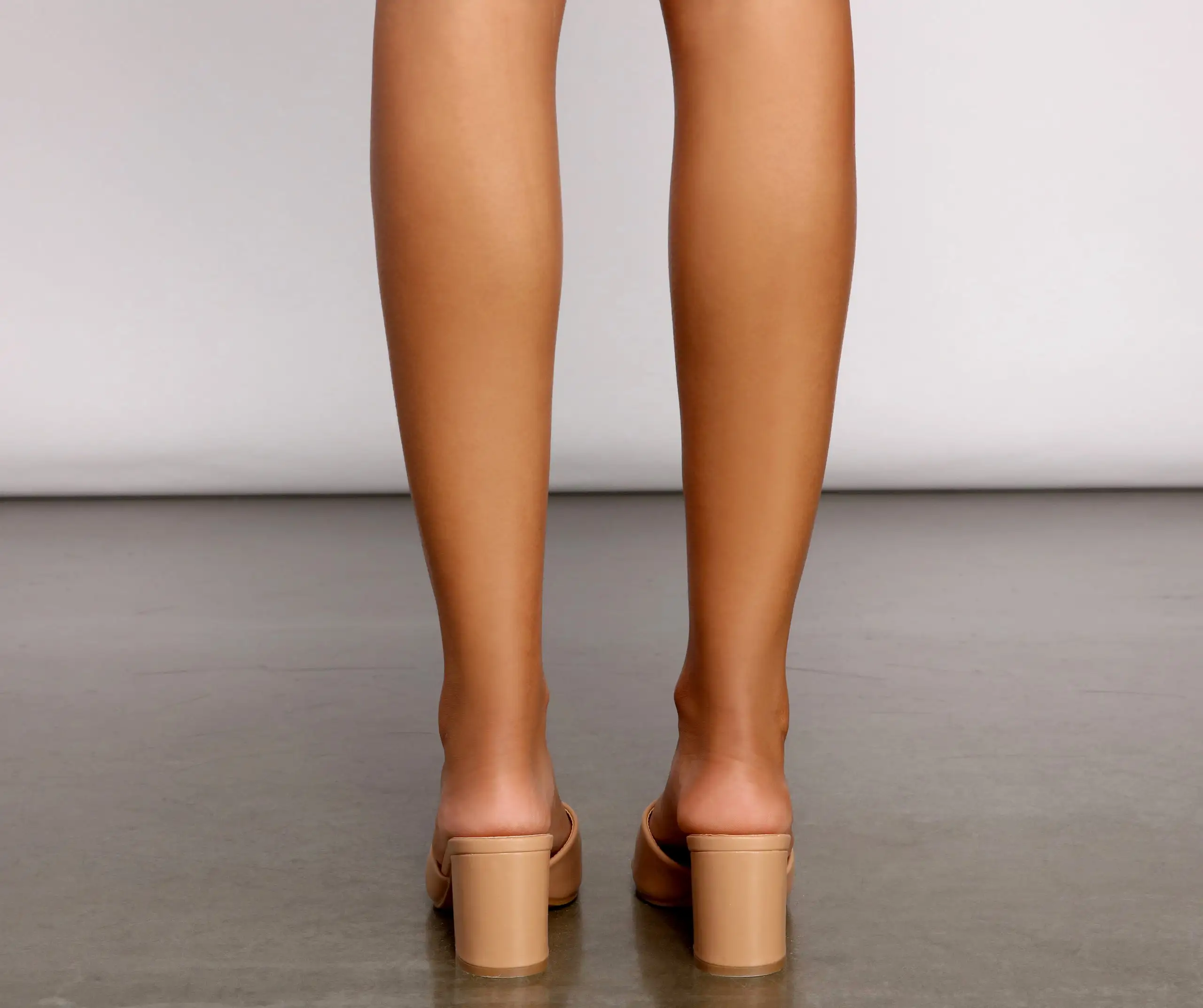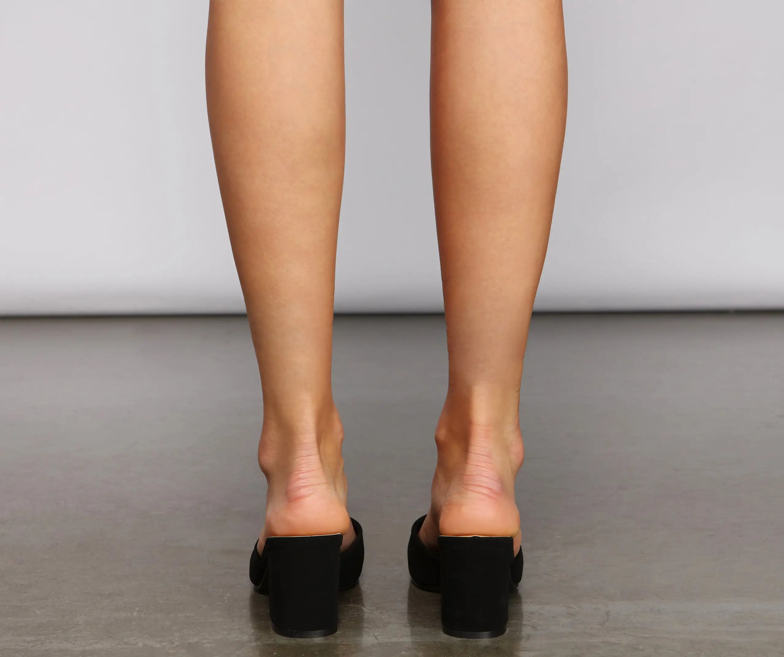 Elevate your style with chic mules that can take your look to the next level. The mules feature an open back, a wide strap over the toe, a square toe, and a block heel. Complete look with a