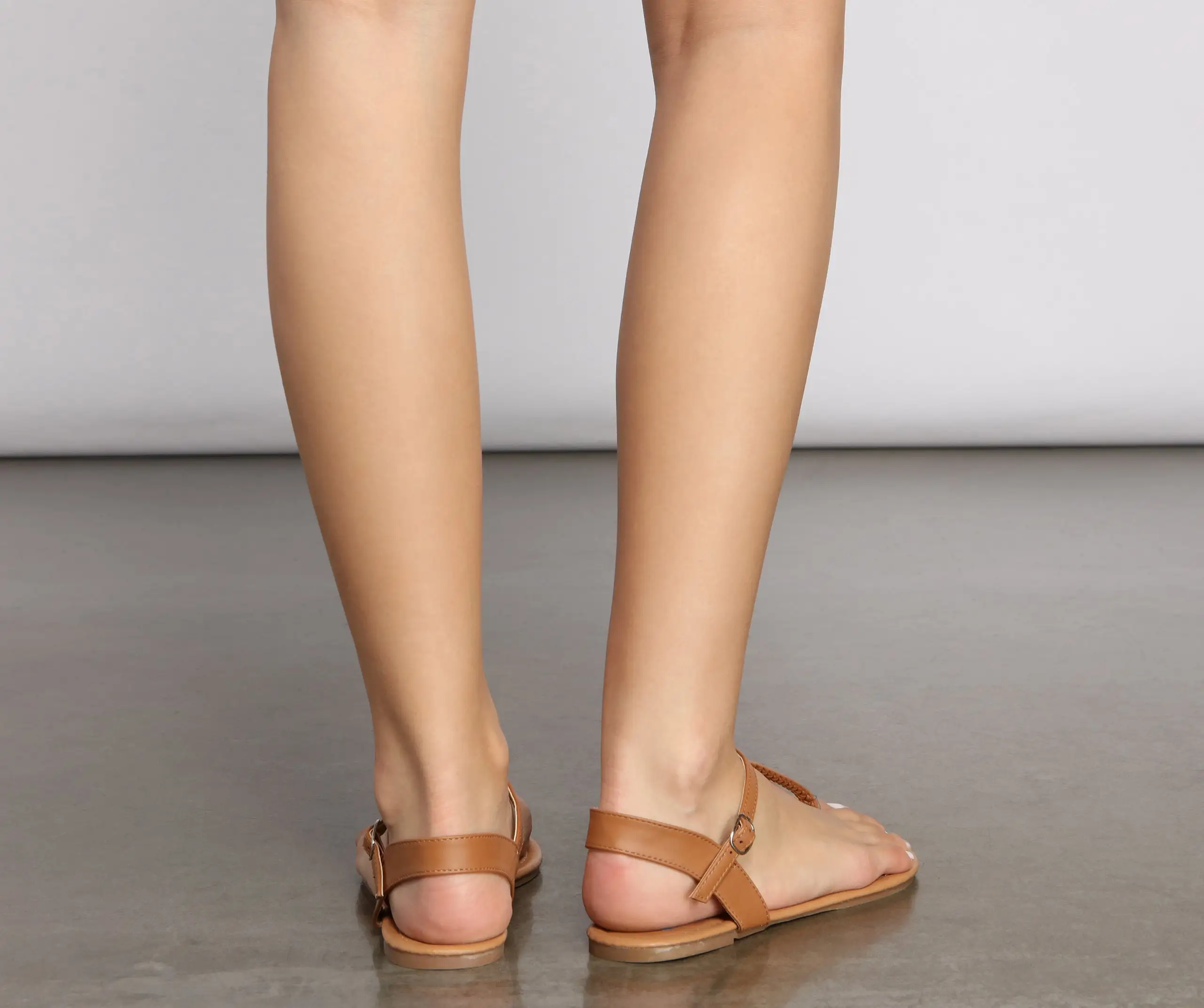 These sandals will become your go-to for all your fave looks this season! They feature an open back, an adjustable ankle strap, a braided T-strap and a flat faux leather insole lining.