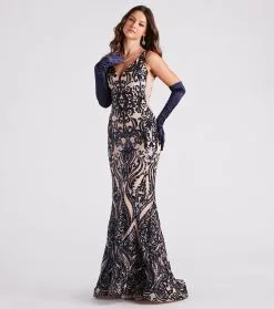 Channel a beautifully elegant look in the ever captivating Gracelyn ivory dress! She features a sleeveless bodice, a plunging V neckline with an unlined mesh inset, lined padded cups and narrow shoulder straps. Her bodice features a partially sheer unlined mesh fabric adorned with sparkling rhinestones and pearl accents for a luxe detail! Her elongating floor length chiffon silhouette is all you need to make a wow-worthy entrance! Dress is composed of combination mesh and chiffon fabric that offers a relaxed fit with minimal stretch. Includes knit lining and back zipper closure.