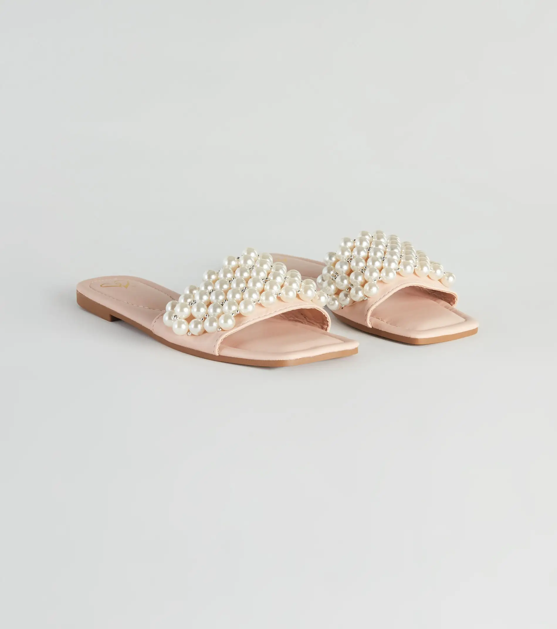 You’ll truly covet these faux pearl sandals all season long! They feature a square toe, a wide single strap with faux pearls, a quilted faux leather footbed, a flat sole, and slide-on-and-off styling. Complete the look in a trendy