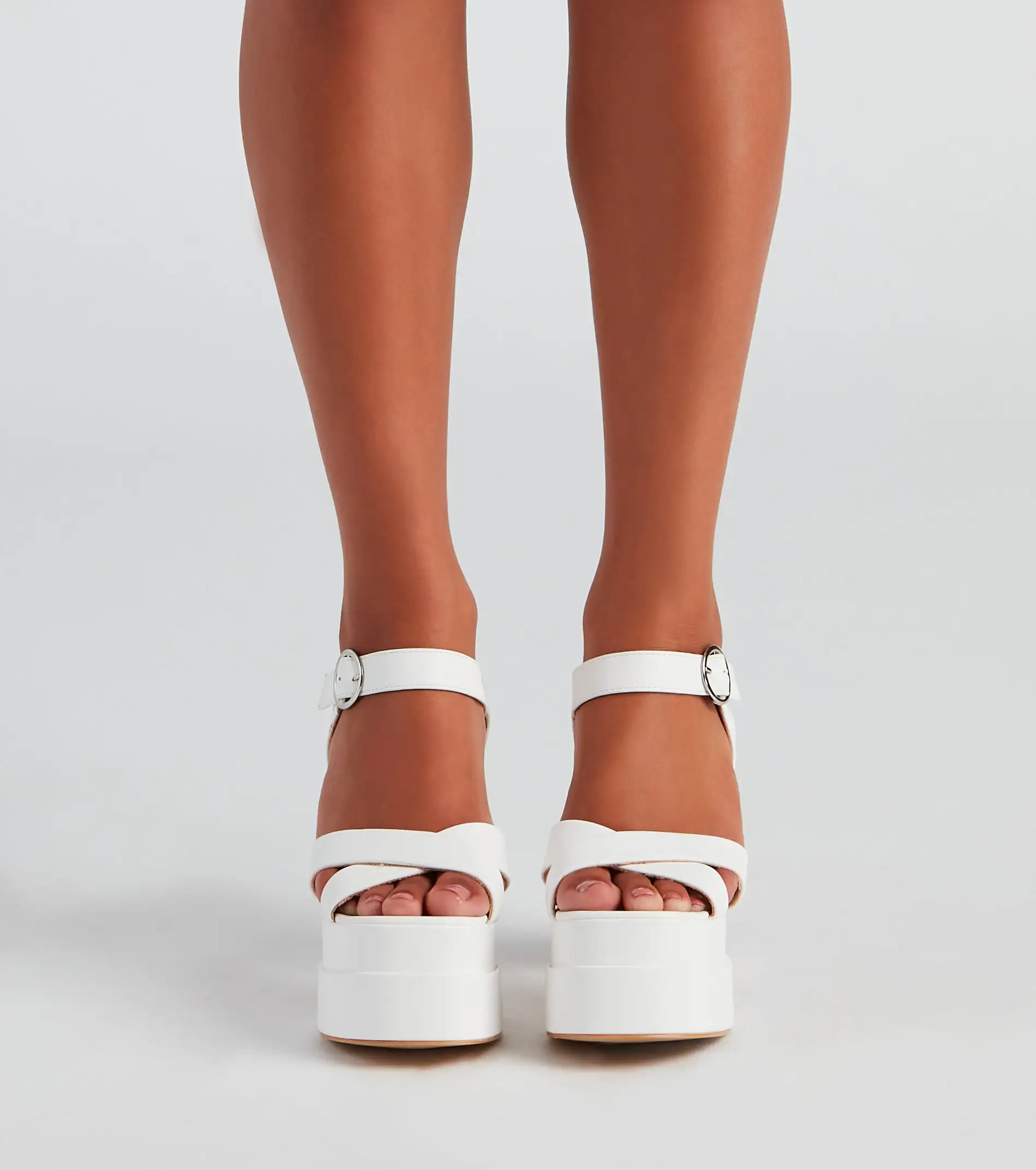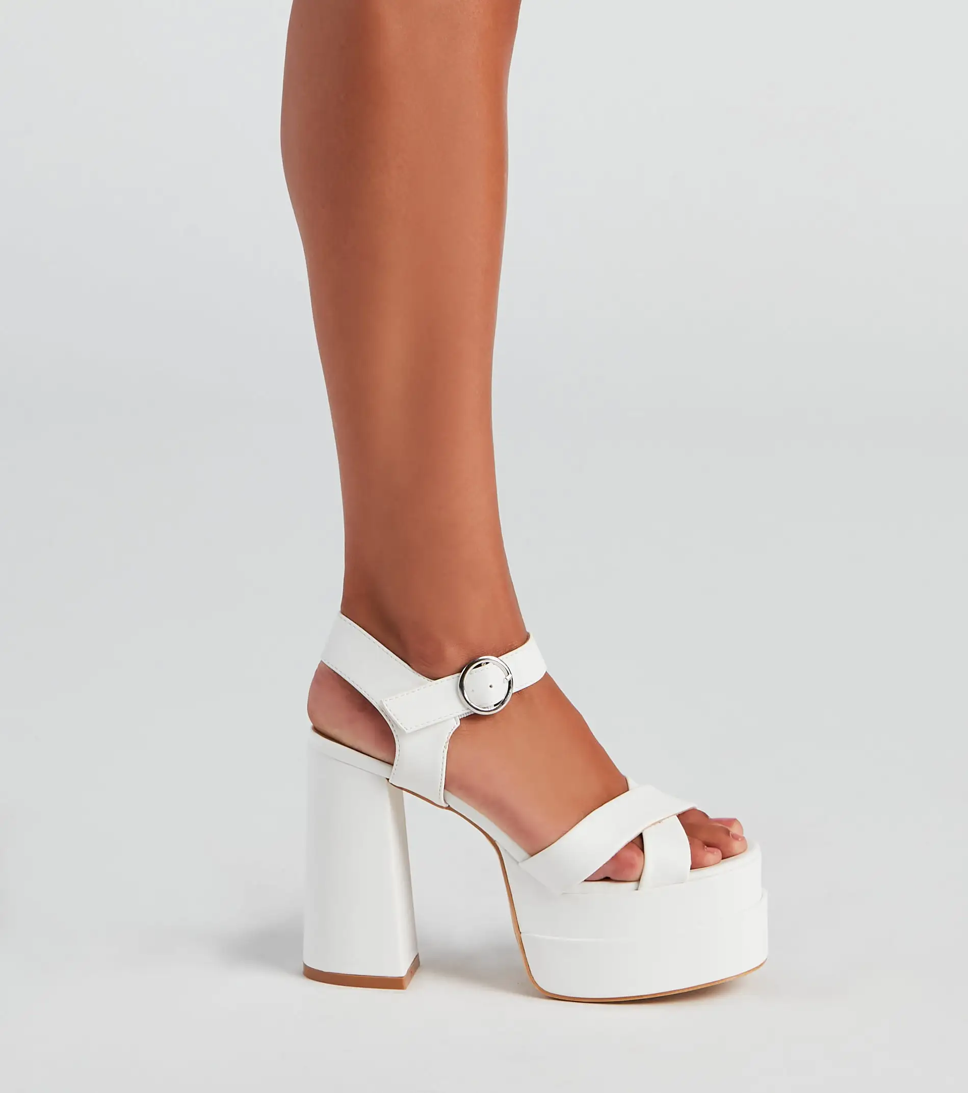 A cool girl like you is in need of these Y2K-inspired nubuck heels! They feature an almond toe, chunky platform sole, block heel, wide cross-toe straps, and an adjustable ankle buckle strap closure. Complete the look in a