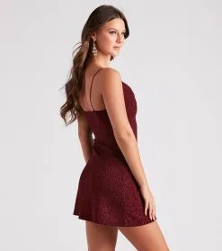 Step out and show off your shine in the Katrina short dress showcasing heat stone embellishments that shimmer from all angles! She features long sleeves, a square neckline, and a bodycon, envelope-style hem. The formal dress is composed of a luxuriously soft velvet fabric with lining and minimal stretch. Complete your dressy look in sparkly