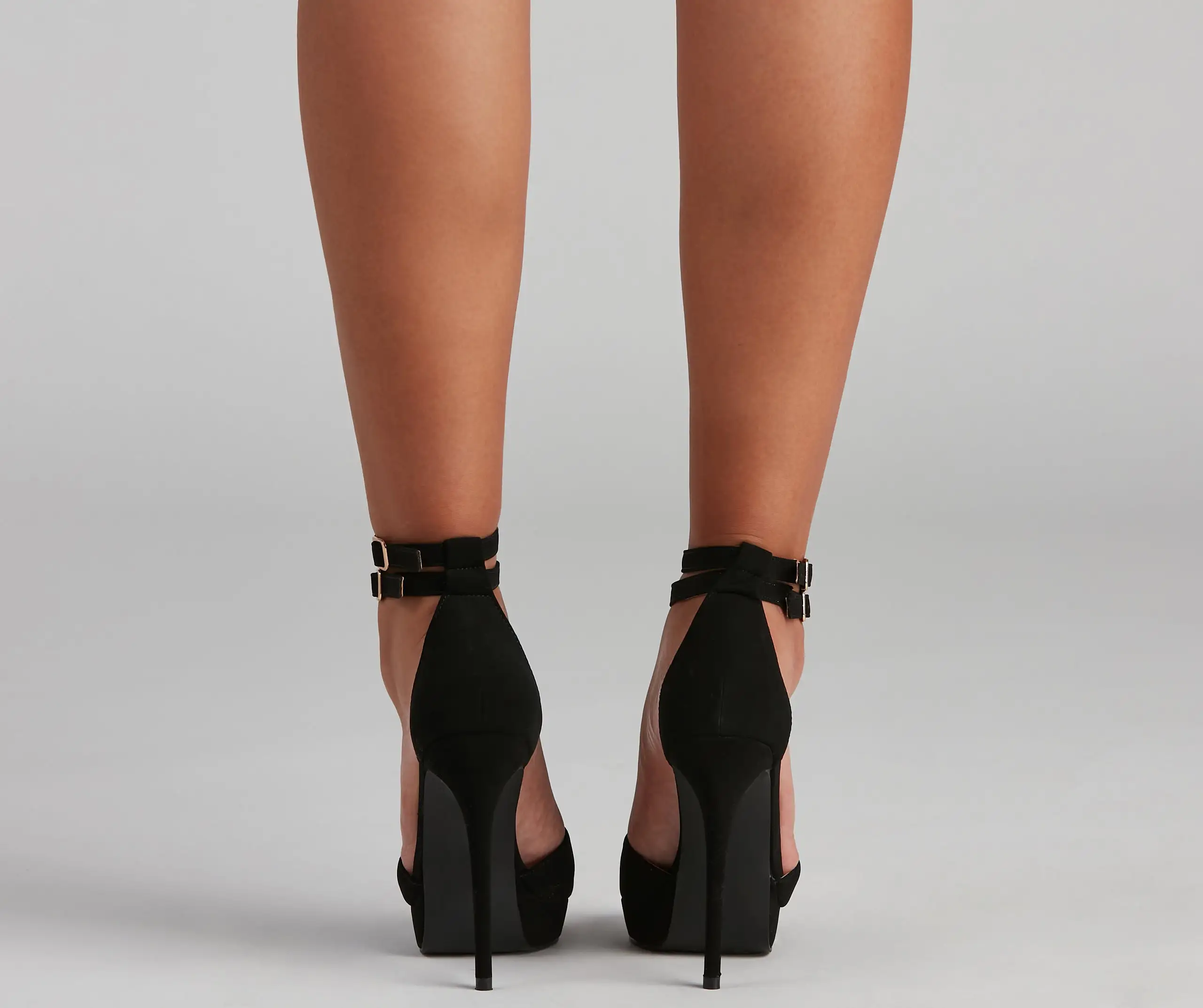 Grab the girls and slip on these sexy stiletto heels for a night on the town! They feature a square toe, platform sole, wide toe strap, and closed ankle with dual adjustable buckle strap closures. Complete the look in a sultry