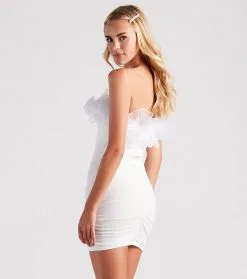 Meet your new luxe satin mini dress for drinks and dancing! Featuring a sleeveless square neck with pleating, spaghetti straps, a bodycon silhouette, and a flirty hem slit. Style with a clutch and sparkly