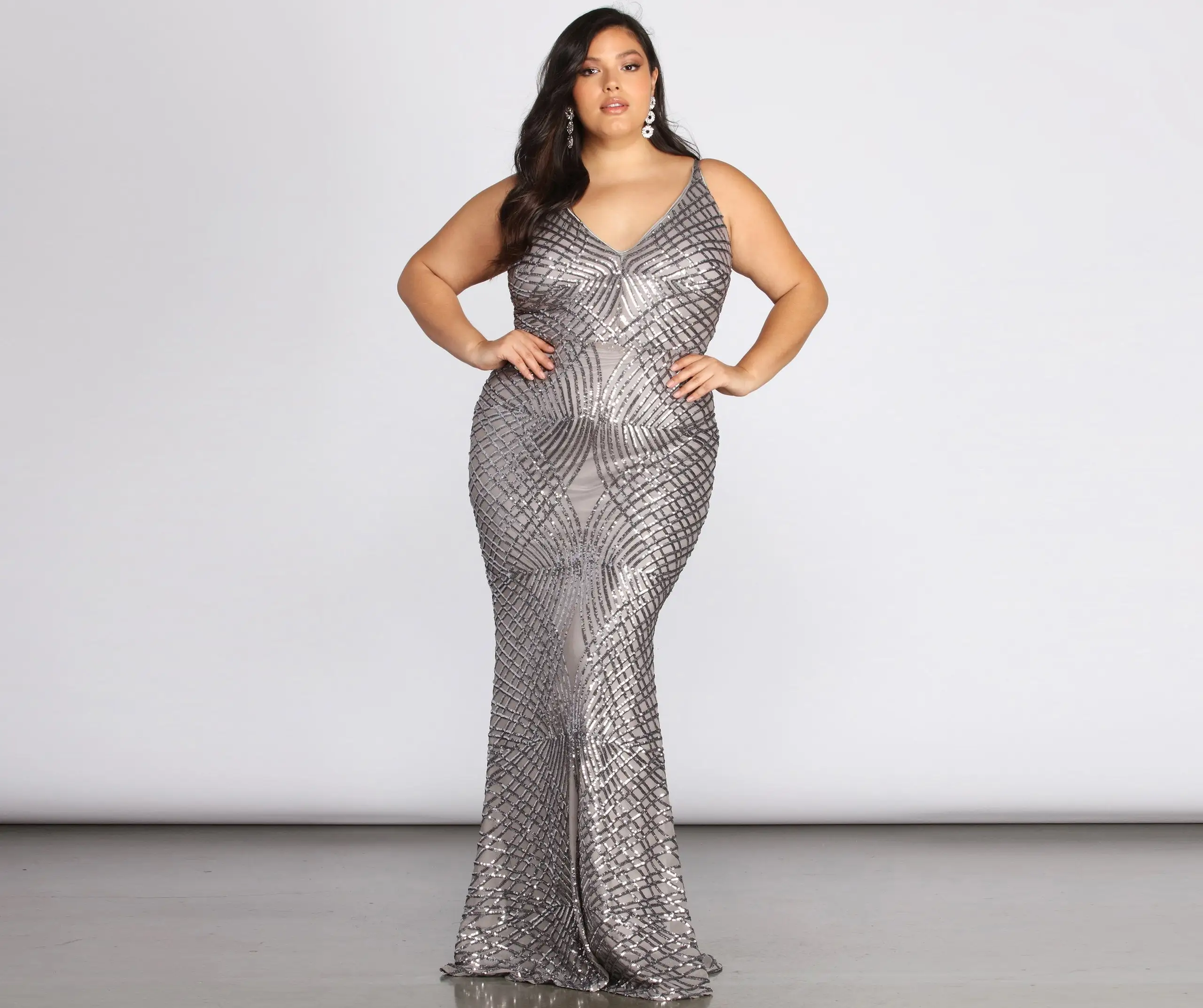 Glow from within as you dazzle in our charming Alani silver dress! She features a sleeveless bodice, a V neckline and adjustable narrow straps. Her relaxed fit bodice leads to a curve flattering mermaid silhouette. She is composed of a lined mesh fabric that is adorned with sparkling sequins. Dress offers a moderate stretch and includes a back zipper closure.