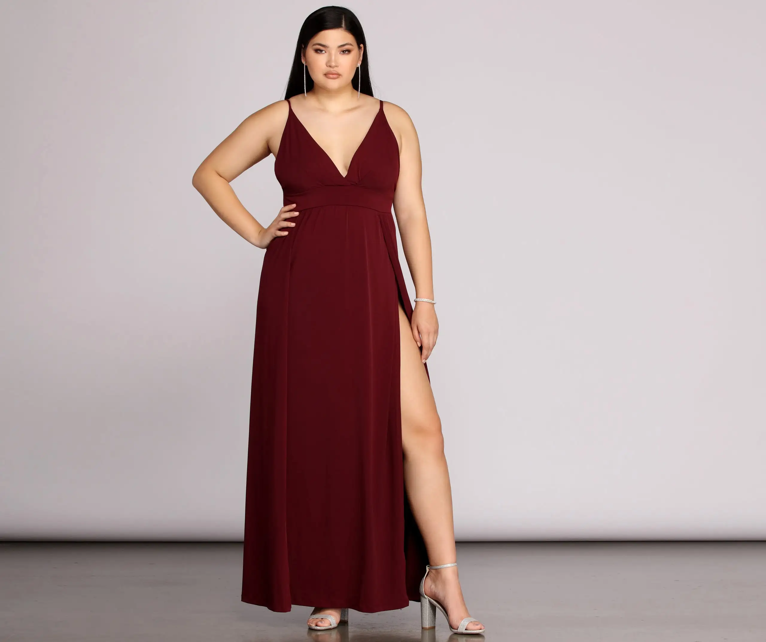Raise the bar in our sophisticated Galilea black dress! She features a sleeveless bodice, a plunging V neckline, adjustable narrow straps and floor length silhouette with double high slits. She is composed of a smooth knit fabric that offers a curve flattering fit with plenty of stretch.