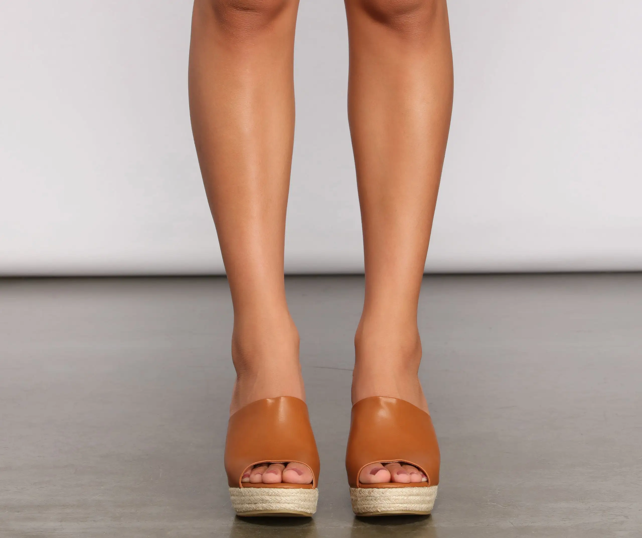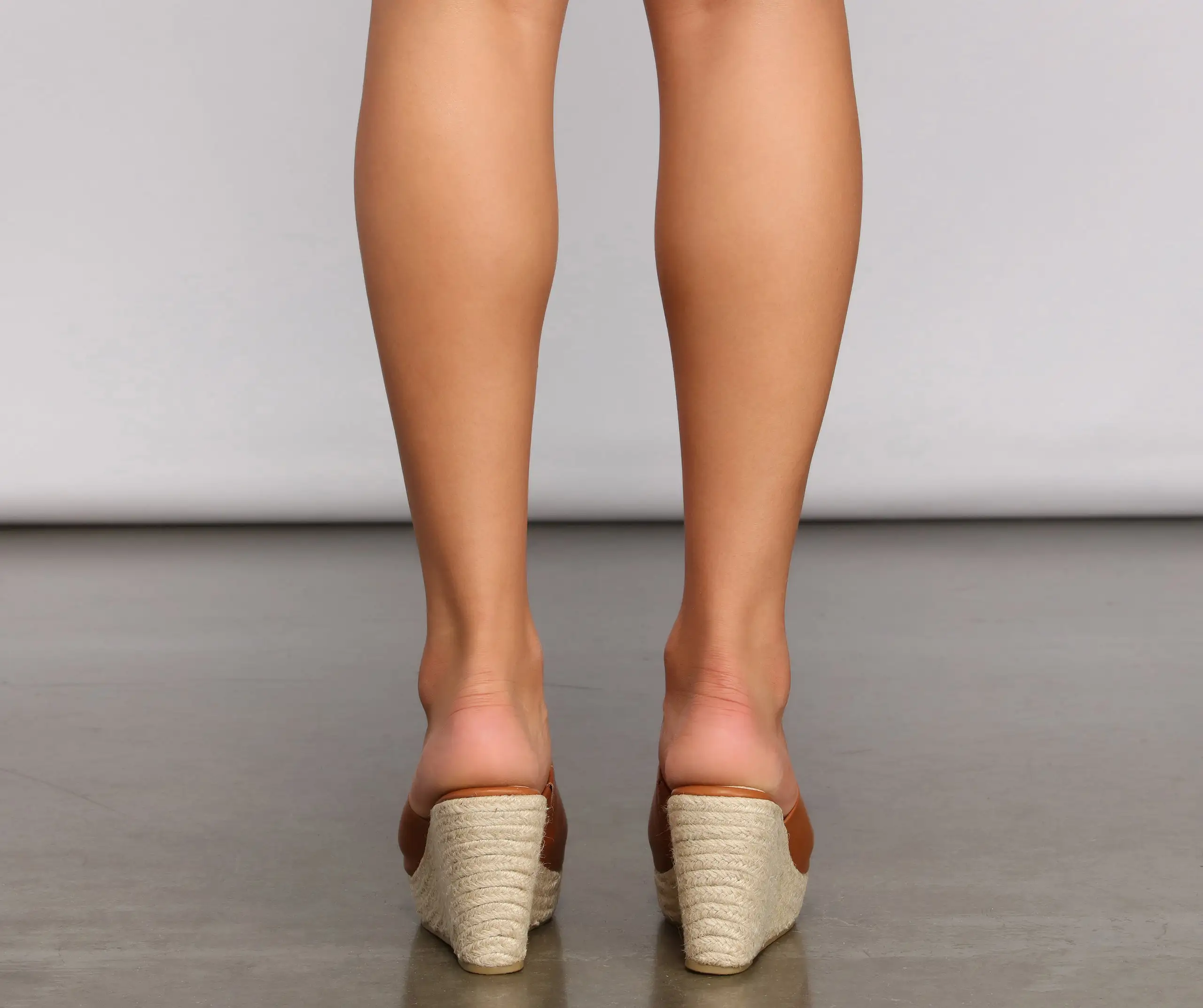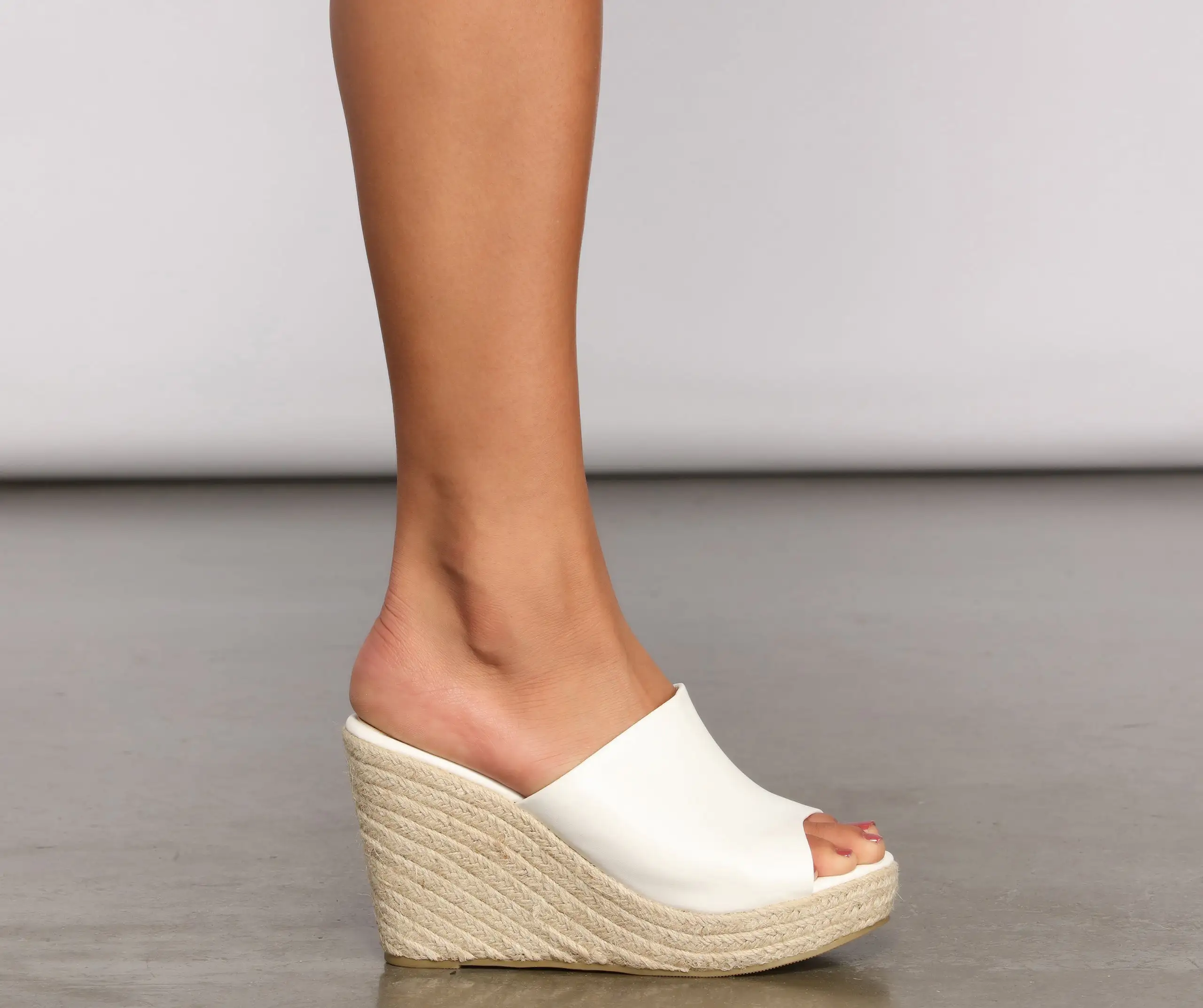 Stay on trend with wedges that are perf for summer! The wedges feature a slip-on design, a wide faux leather strap, a peep toe, and an espadrille wedge heel. Complete look with a