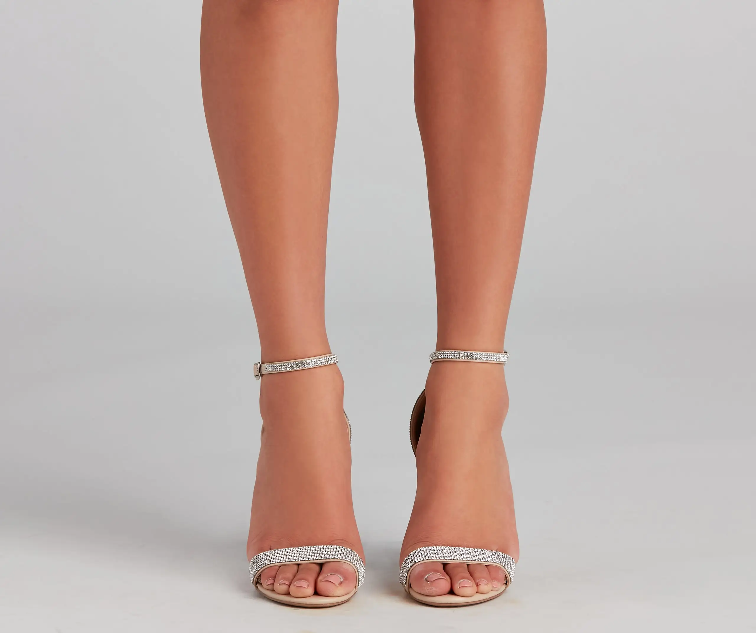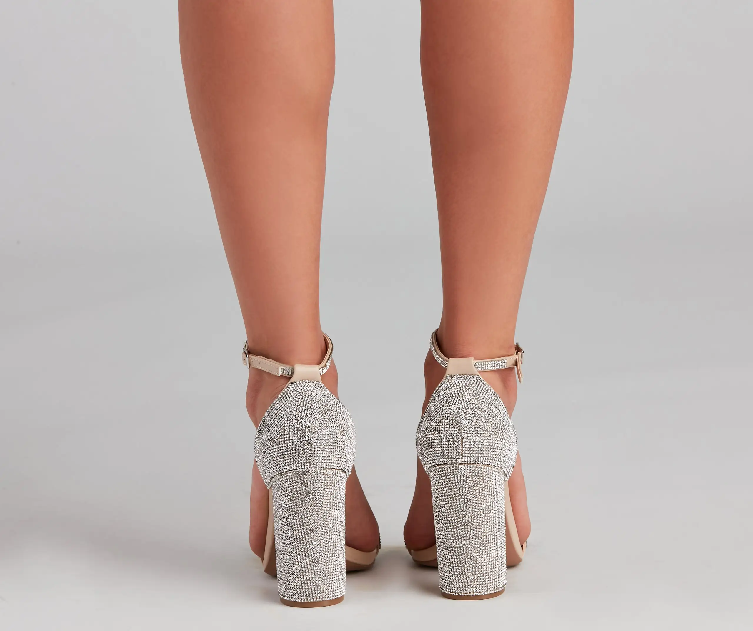 Step out and sparkle with every step you take in these gorgeous block heels. They feature an open almond-shaped toe with a strap, a thin adjustable ankle strap, a block heel, and all-over mini rhinestone embellishment. Style these heels with