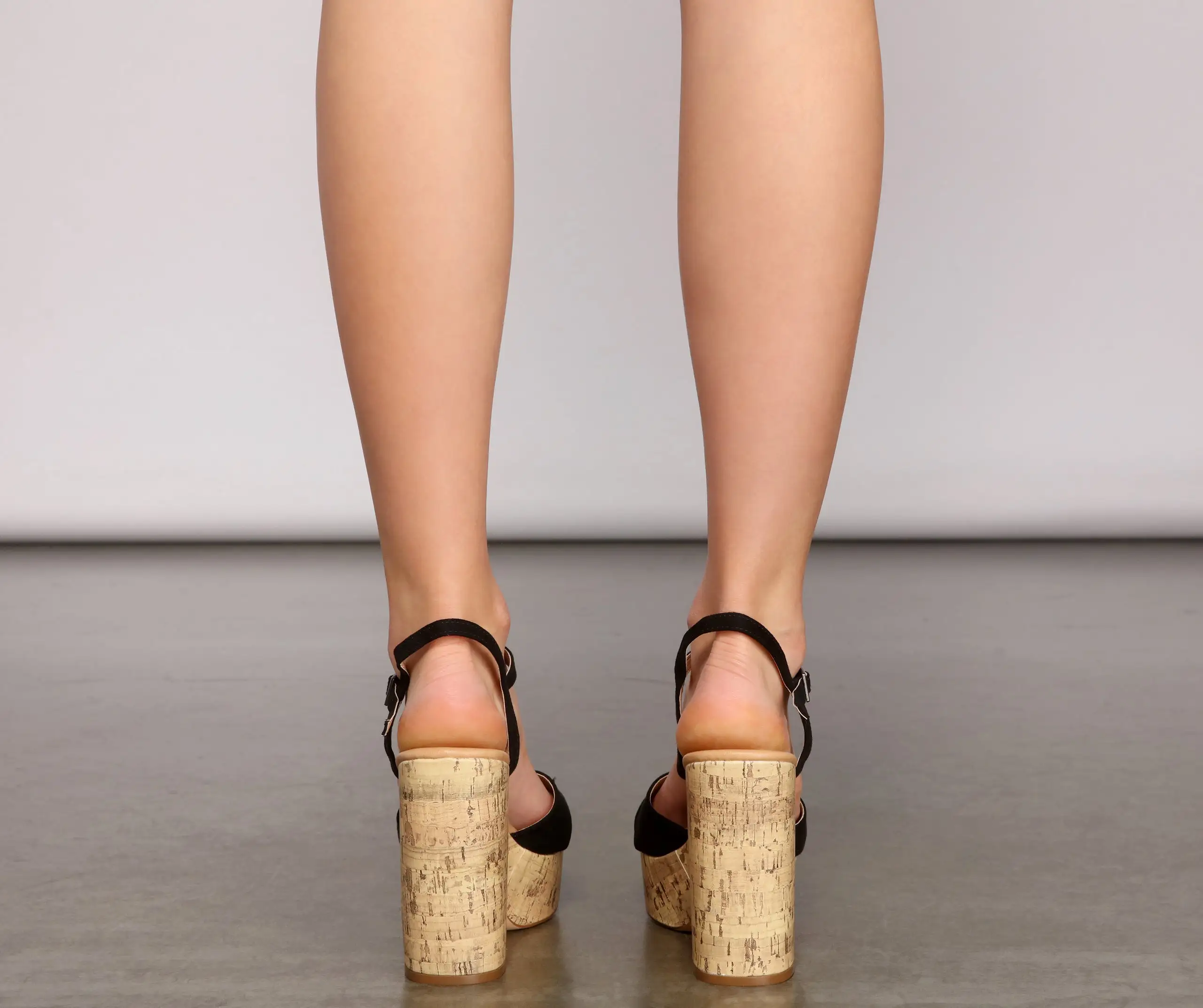 Get a casual glam look this summer season in these adorable cork heels! They feature an open round toe, a thick criss-cross strap design, an adjustable ankle strap, and a cork platform and block heel. Style these trendy heels with a