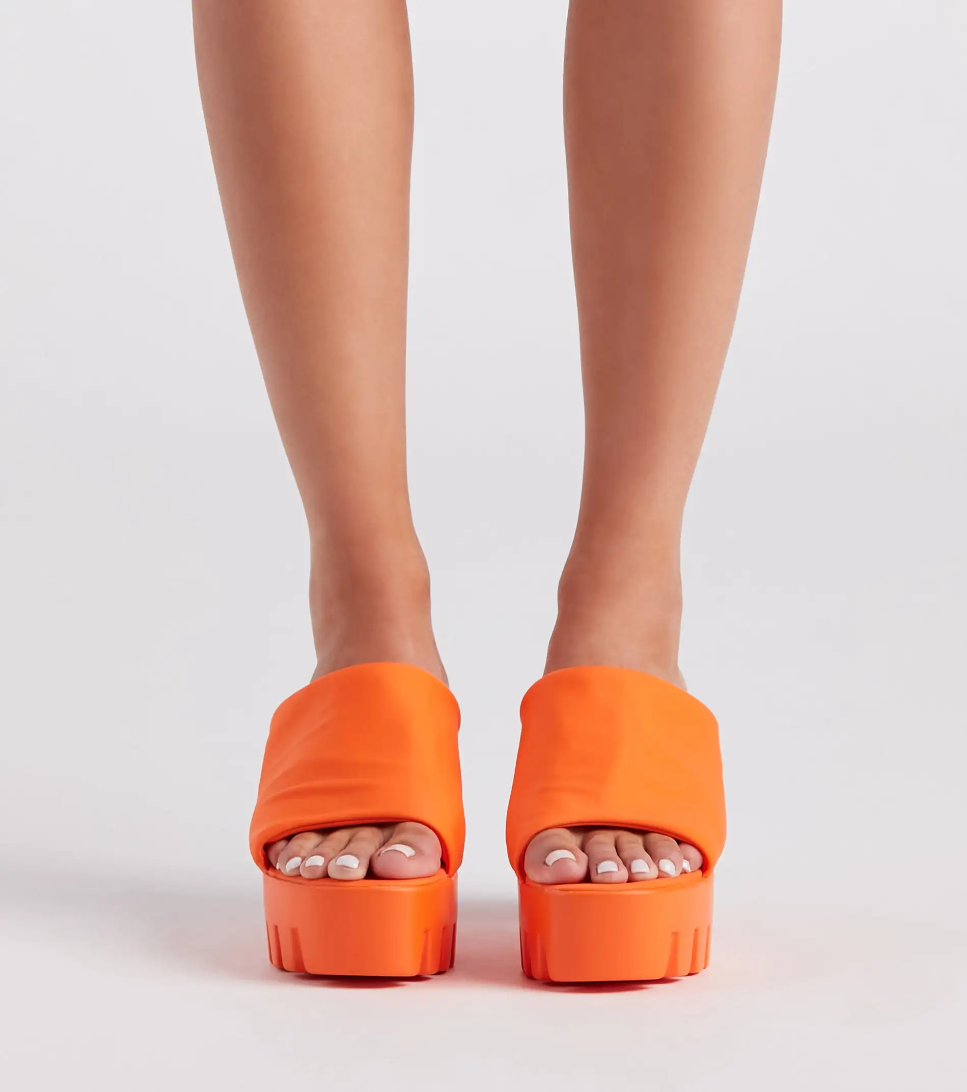 You’ll be in your trendy girl era with these fabulous chunky platform mules! They feature an open almond-shaped toe, a wide banded toe strap, an open back for easy on-and-off styling, a chunky platform with a lug sole, and a tall block heel. Style with a flirty