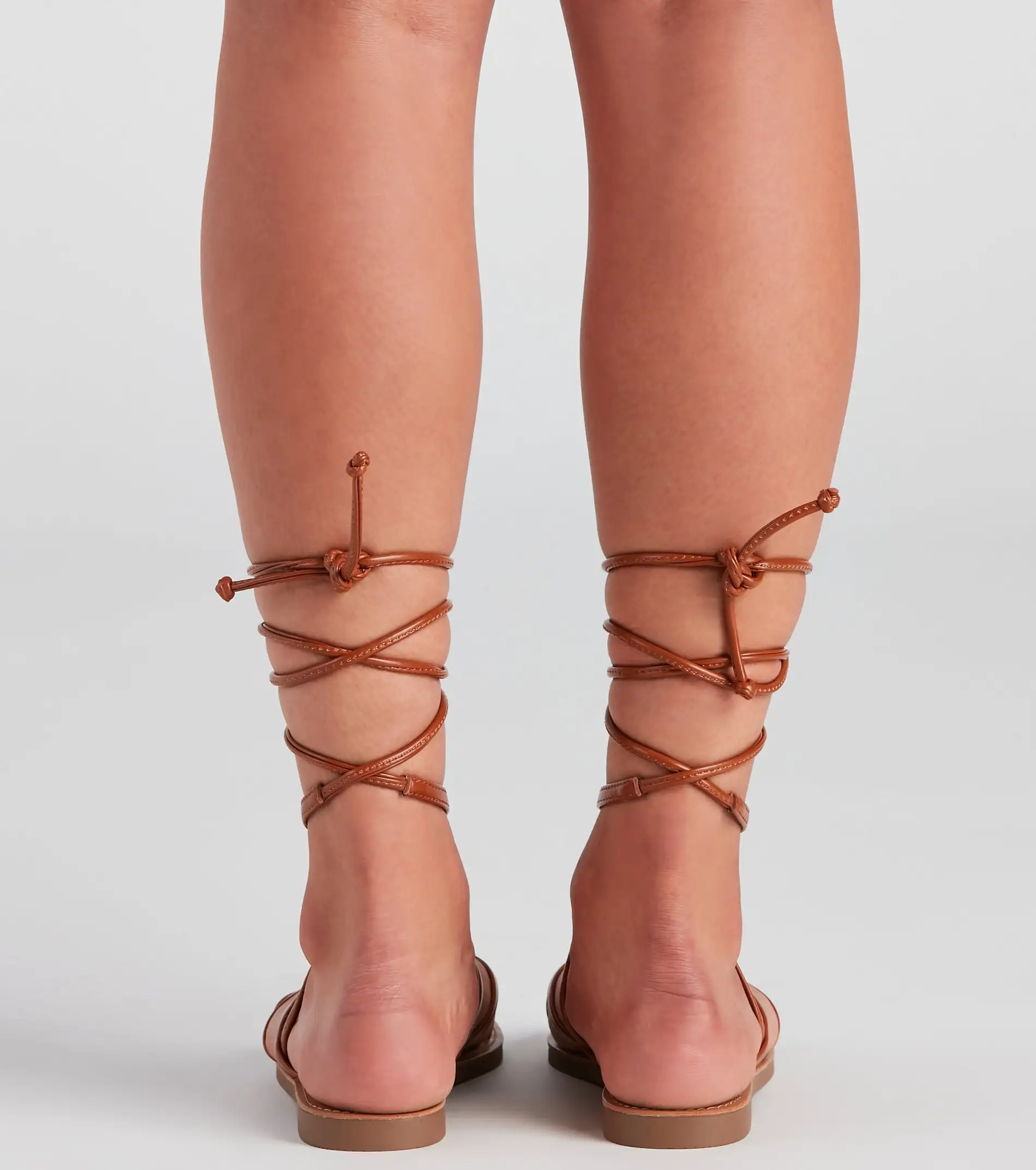 These lace-up sandals are exactly what your summer line-up needs! They feature an almond toe, strappy design, and a flat sole. Complete the look in a short