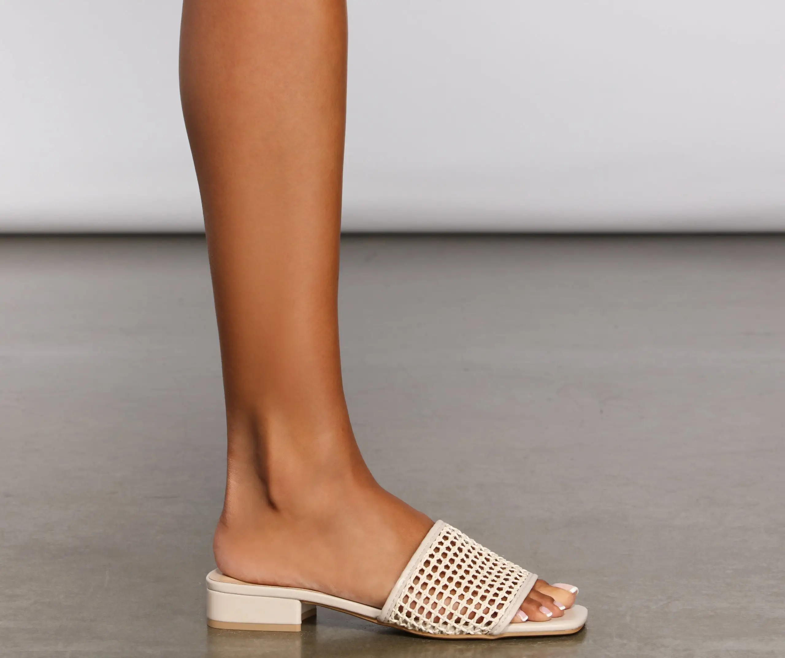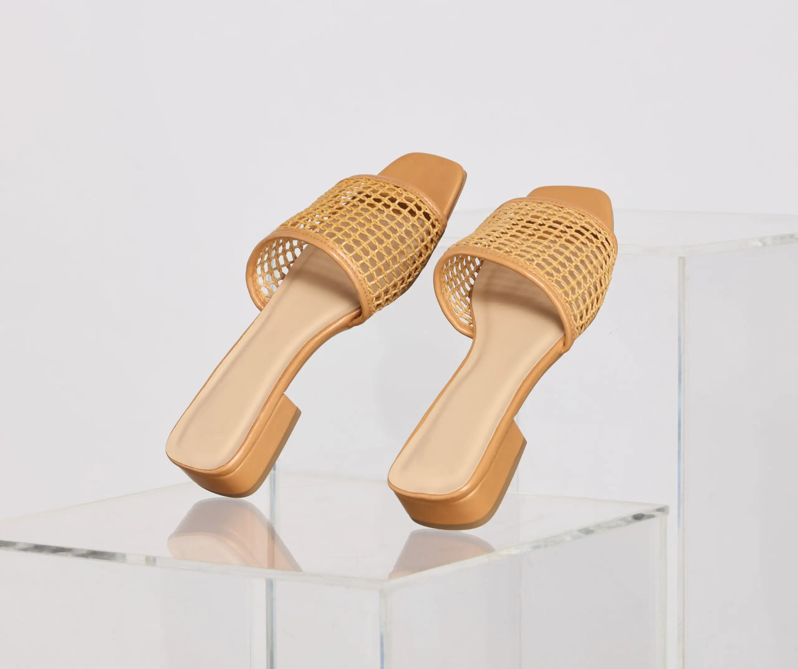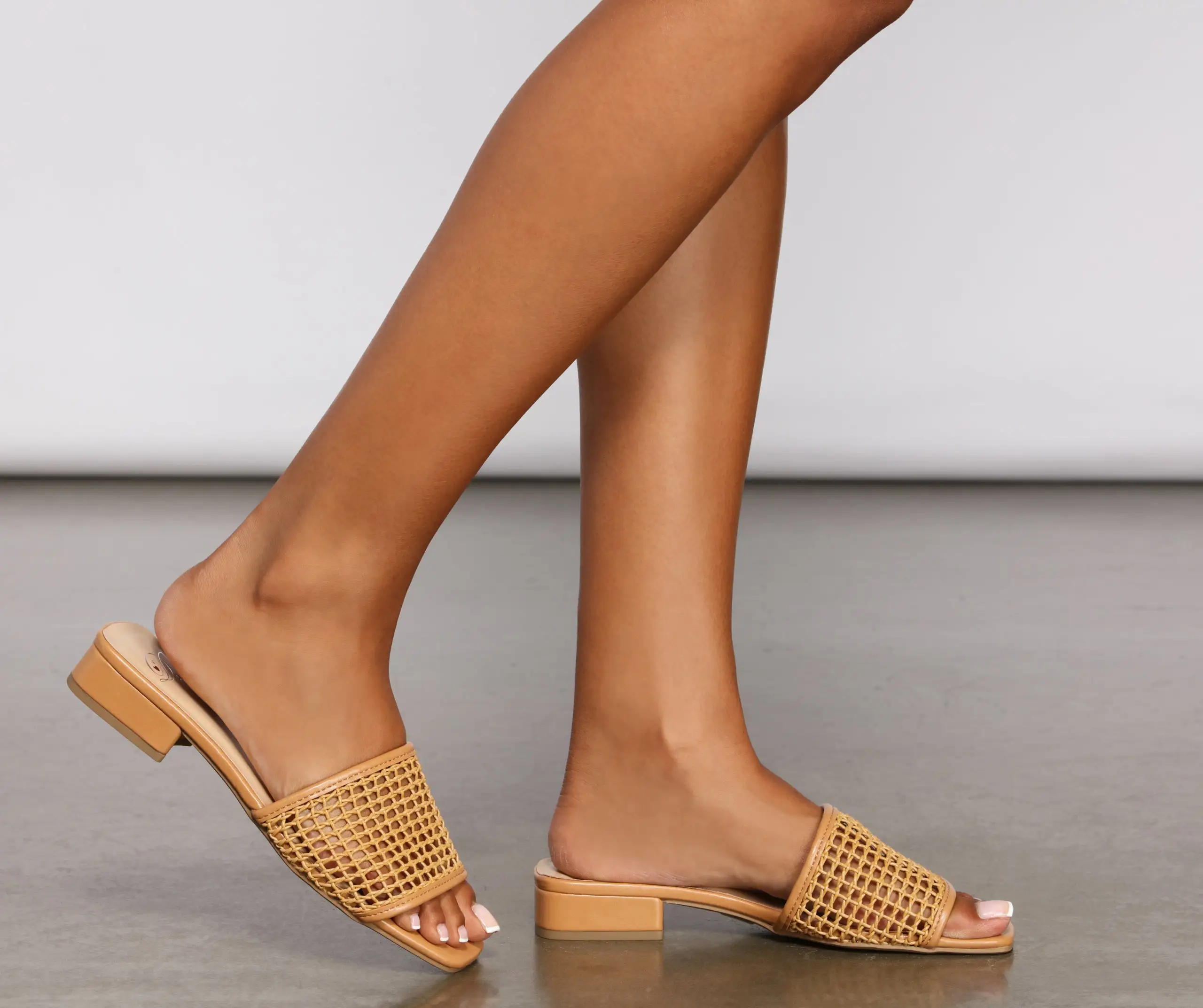 Get away with these chic sandals! The sandals feature an open square toe, a woven strap over the toe, and a low block heel. The sandals are composed of a faux leather material. Complete look with a
